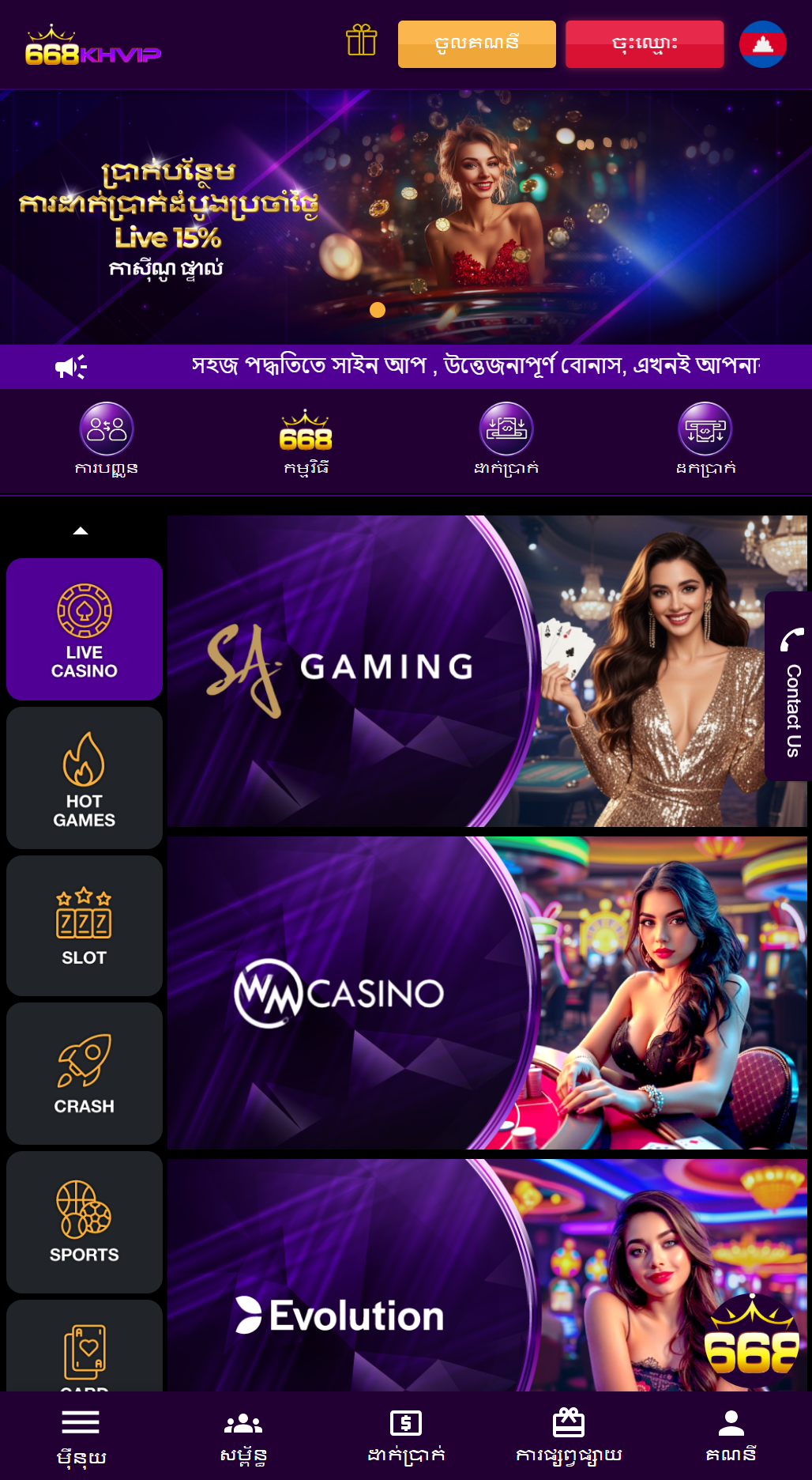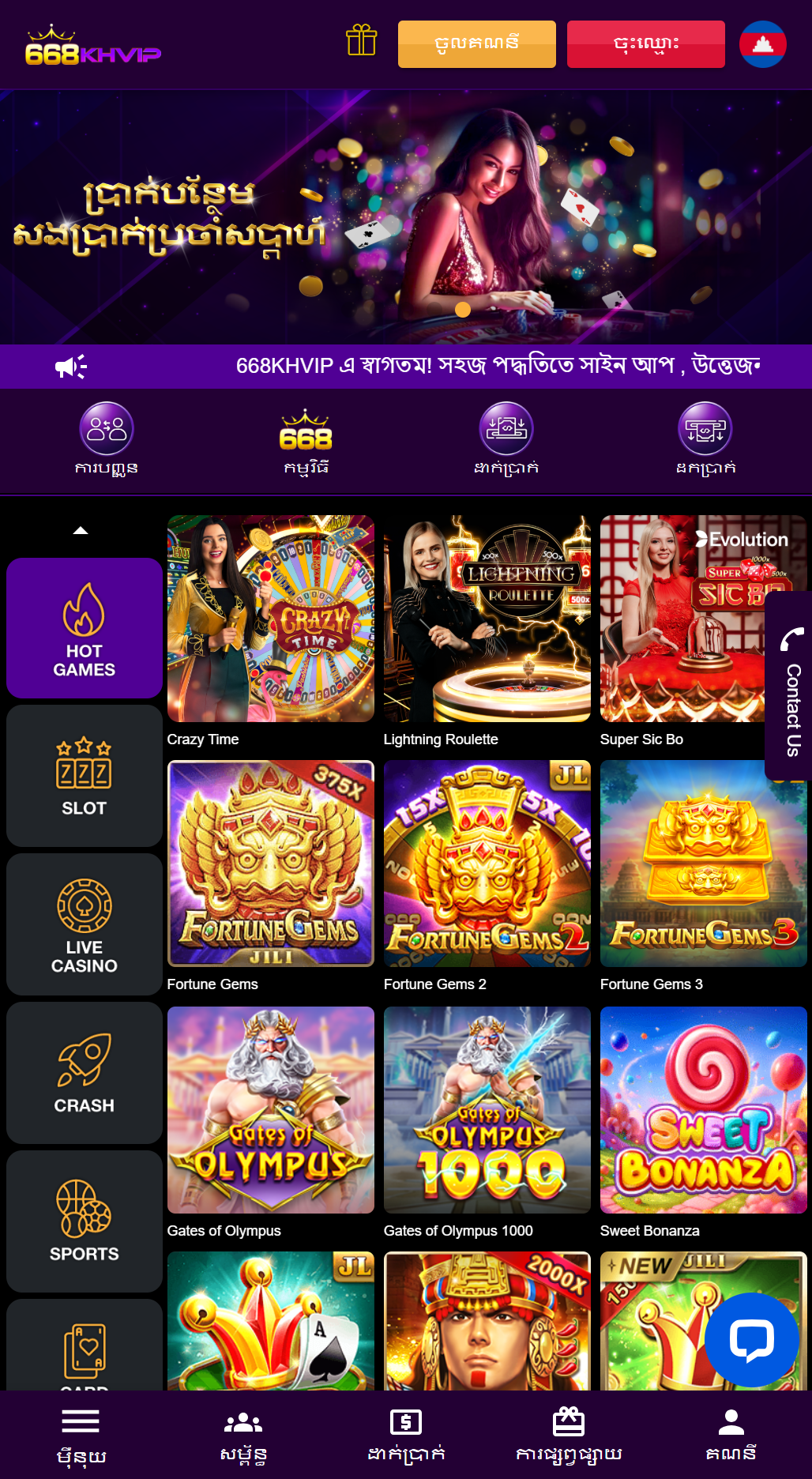668KHVIP គឺជាគេហទំព័រហ្គេមស្លុតអនឡាញពេញនិយមបំផុតនៅកម្ពុជា ដែលអនុញ្ញាតឱ្យអ្នកបង្វិលស្លុត និងឈ្នះប្រាក់ធំៗបានគ្រប់ពេល។