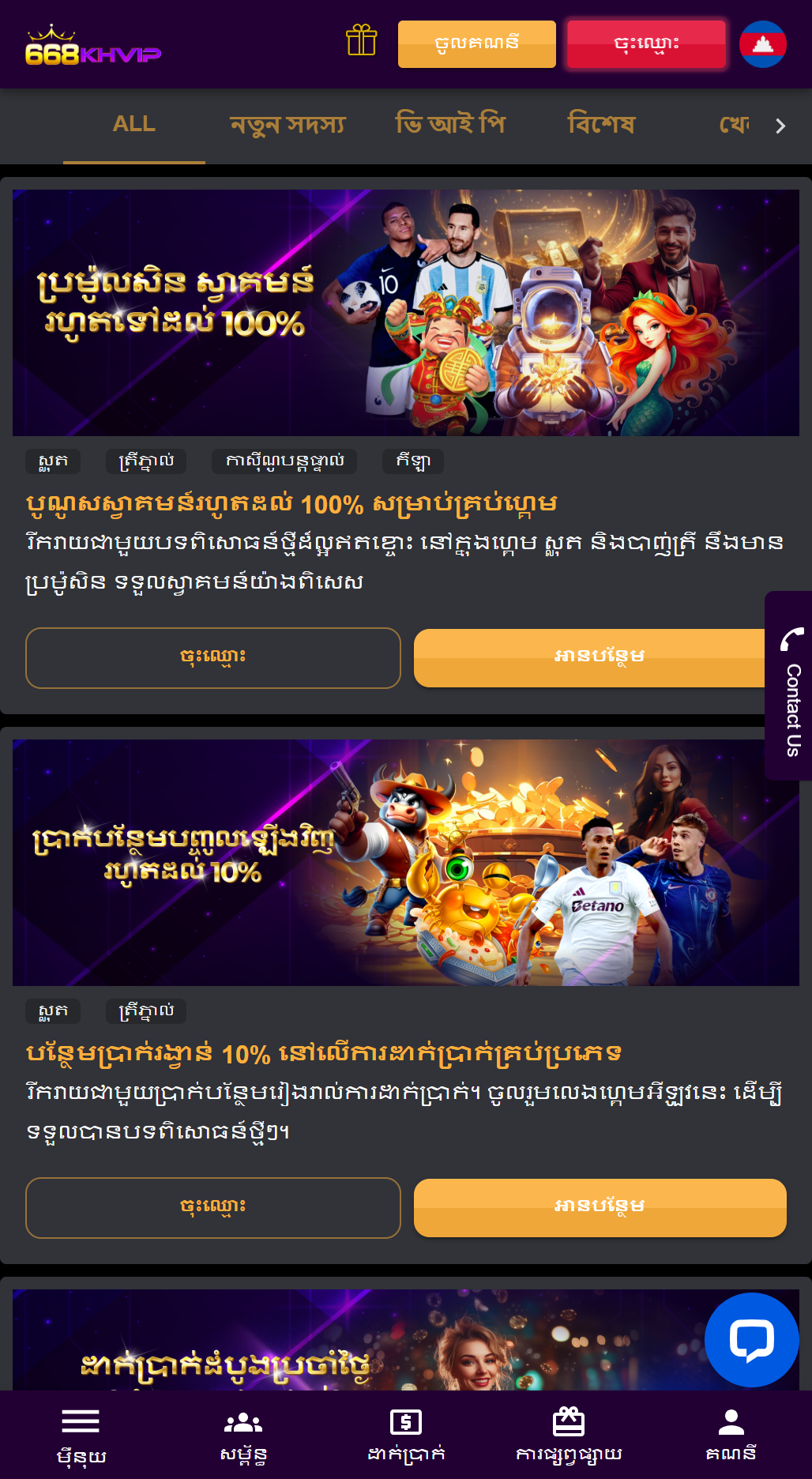 668KHVIP មានរង្វាន់ជាច្រើន បូណស្សរៀងរាល់ថ្ងៃ និងបង្វិលសំណាងសប្ដាហ៍ៗ។